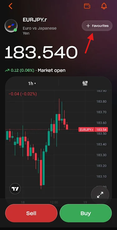 Any selected instrument can be added to your Favourites. Once marked, it will appear in the Favorites tab of the main Trade section for quick access.
