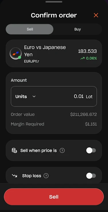 Tap Sell or Buy to prepare your trade. Configure your trade settings and confirm the order.