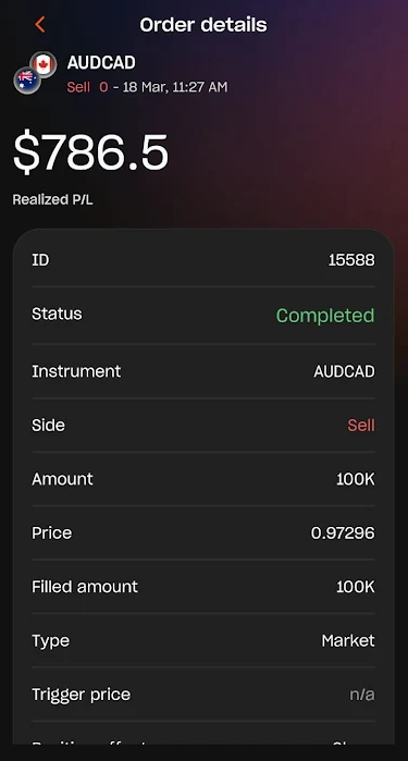Tap on a specific trade to expand and view all order details.