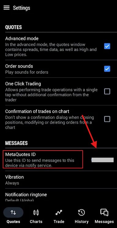 3. Find and copy your MetaQuotes ID.