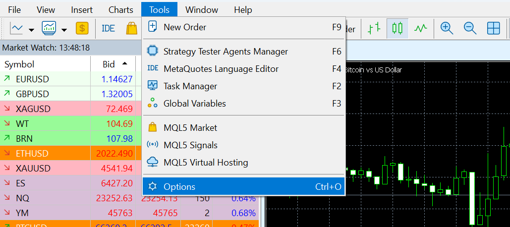 1. Open your MetaTrader terminal on your PC.