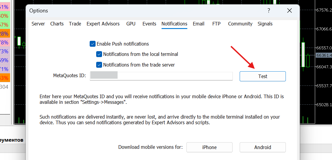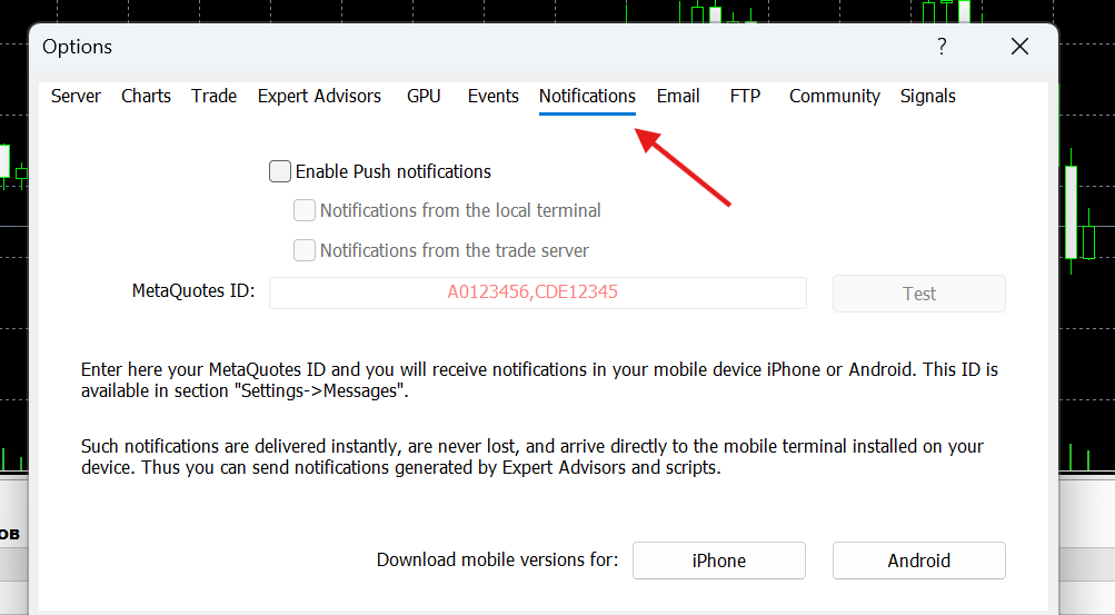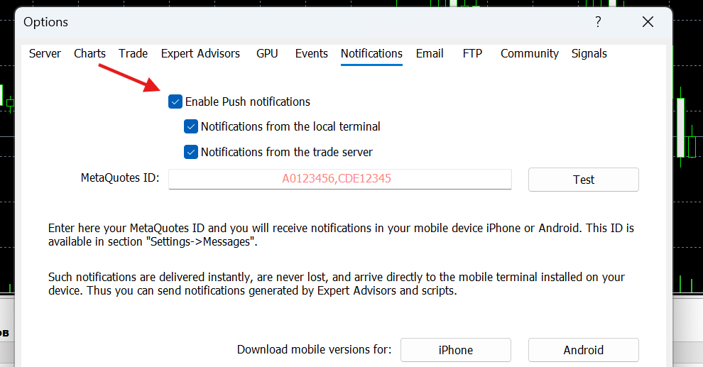 Note: ensure that your phone’s system settings allow notifications for the MetaTrader app so you never miss an update!