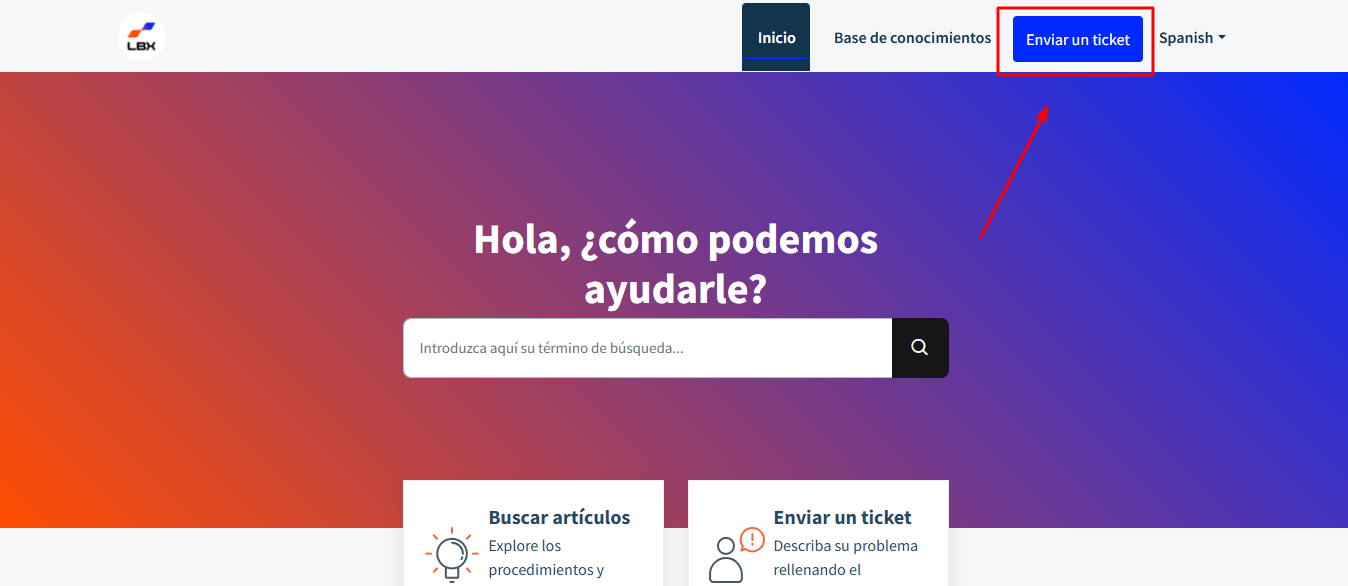 1. Haz clic en "Enviar un ticket"