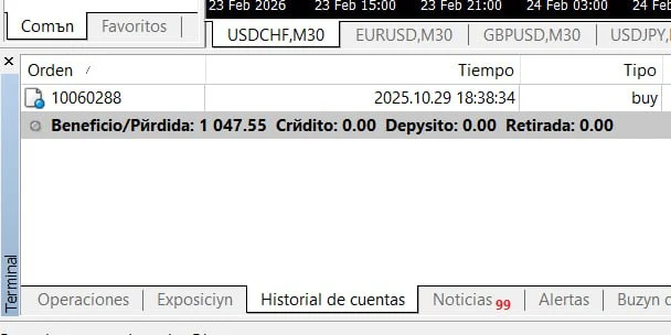 • Abrir el historial de transacciones: En MetaTrader, haga clic en la ventana "Terminal" ubicada en la parte inferior (si no la ve, presione Ctrl+T). Seleccione la pestaña "Historial de cuentas".