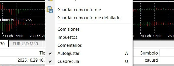• Exportar registros de transacciones: En la ventana "Historial de cuentas", haga clic derecho sobre cualquier transacción. Seleccione "Guardar como informe" o "Guardar como informe detallado" y elija el formato (generalmente HTML o CSV).