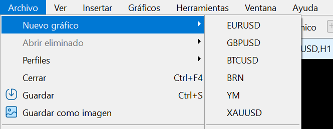 3. Abra un nuevo gráfico: Haga clic derecho en el instrumento que desea ver y seleccione "Ventana del gráfico". También puede seleccionar "Archivo" > "Nuevo gráfico" y elegir un producto específico.