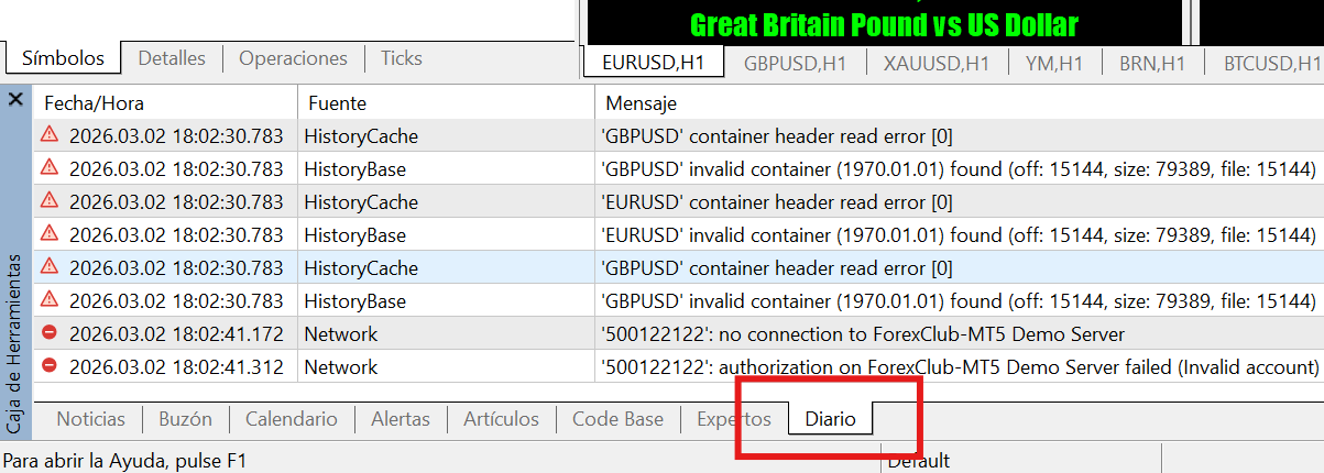 2. En la ventana Terminal en la parte inferior de la pantalla, haga clic en la pestaña "Diario" para ver el historial de todas las actividades de la plataforma, incluyendo inicios de sesión y ejecución de órdenes.