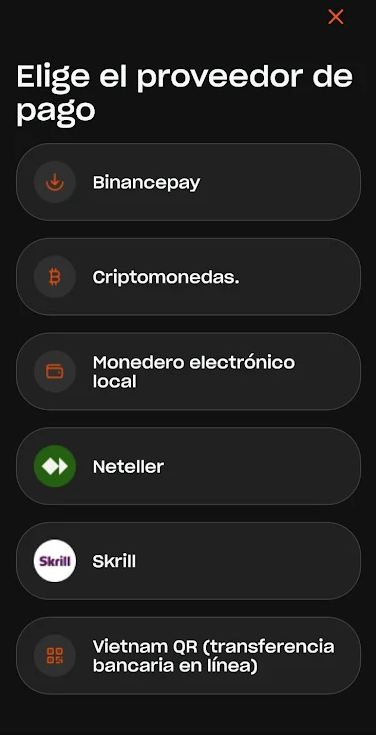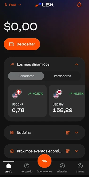 La sección de Depósito le permite recargar su cuenta real. Asegúrese de haber seleccionado la cuenta correcta y, a continuación, toque "Depositar". Elija su método de pago preferido y siga las instrucciones en pantalla.