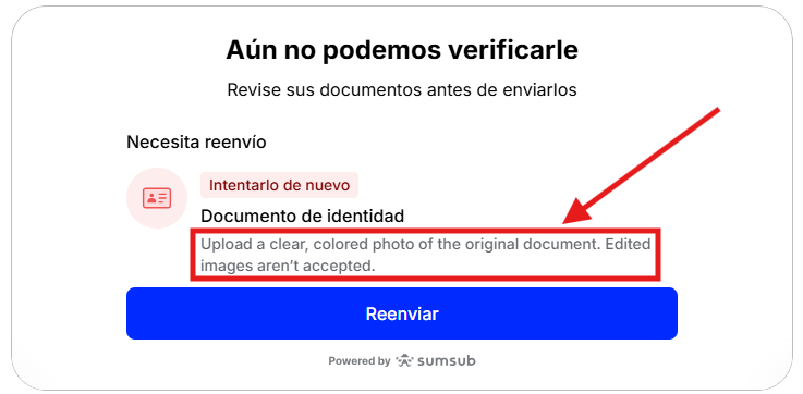 En la mayoría de los casos, tomar fotos nuevas siguiendo las instrucciones anteriores y volver a cargarlas resolverá el problema. De lo contrario, ponte en contacto con nuestro equipo de soporte.