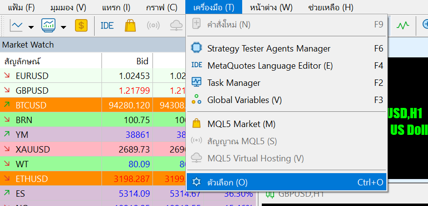 1. เปิดเมนูเครื่องมือ: บนหน้าหลักของ MetaTrader ให้คลิก "Tools" (เครื่องมือ) > "Options" (ตัวเลือก)