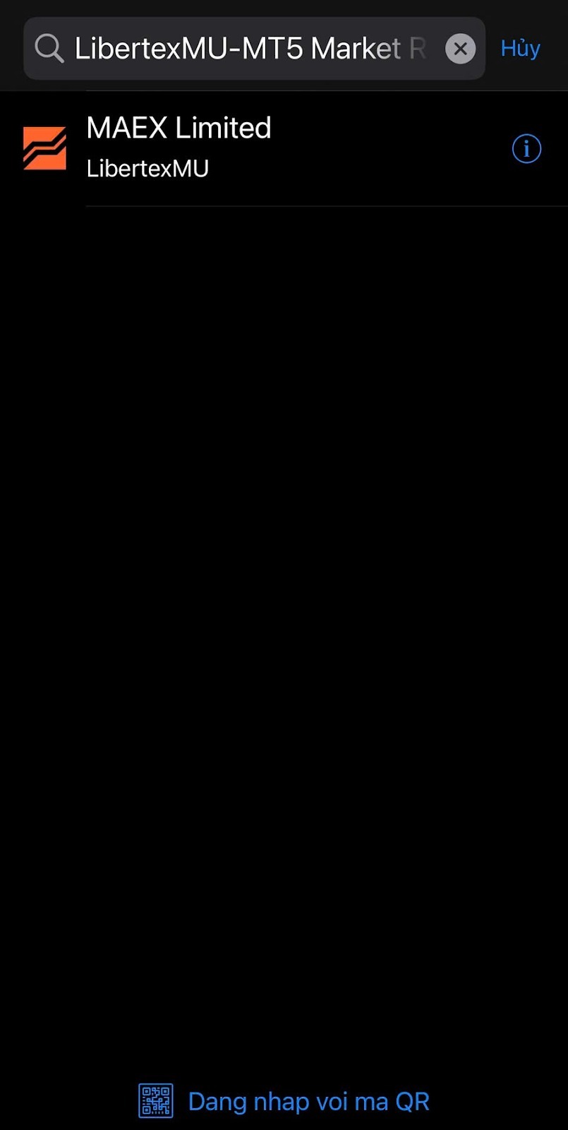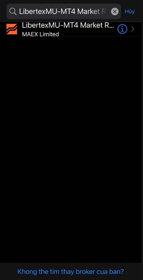 Trong thanh tìm kiếm, nhập tên máy chủ của nhà môi giới như được hiển thị trong tài khoản LBX của bạn ở mục "Tài khoản".