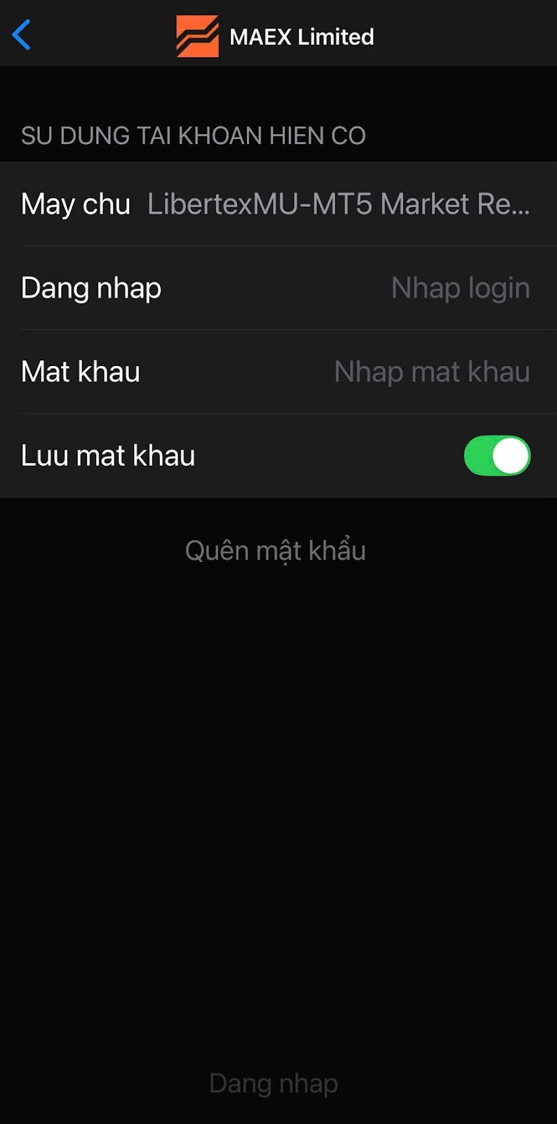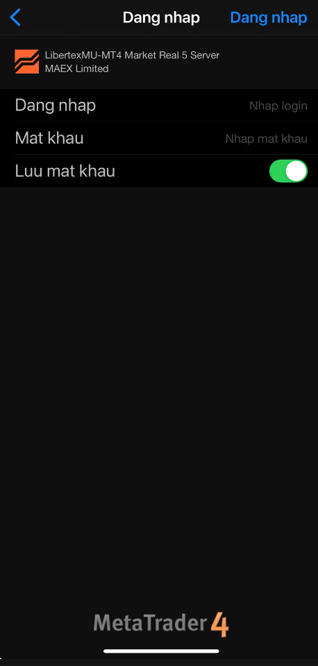 Ví dụ: LibertexMU-MT4 Market Real 1 hoặc LibertexMU-MT4 Market Demo 2 (Hãy sử dụng đúng tên máy chủ như trong tài khoản của bạn)
